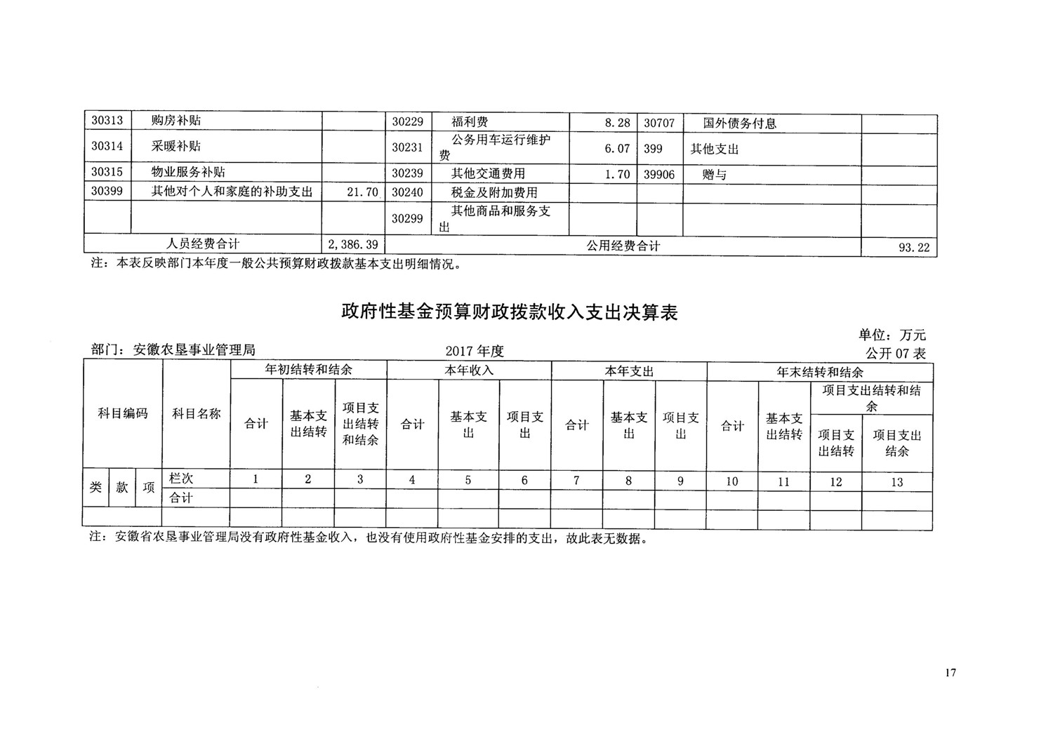 安徽省农垦事业管理局2017年部门决算情况