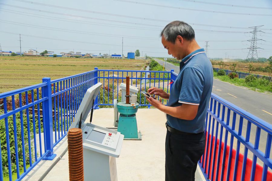 农场公司充分发挥近两年实施的农业灌溉工程改造项目以及高标准农田改造提升项目的工程效益,增加一二级泵站的装机容量,加高主干灌溉渠,新增管理区三级泵站和相应的管道输水系统,同时引入智能灌溉控制系统,通过灌渠和田间水位自动监测、系统识别和入网手机操作,对泵站运行和闸门起降实施远程控制,实现了“按键一点、水流进地,自动控制、水位精准”。
