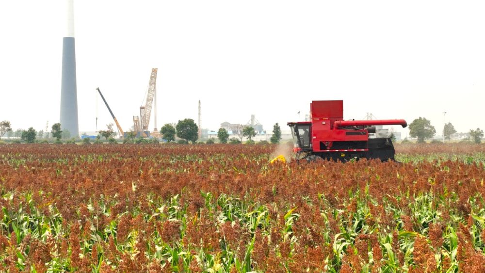 高粱垂红穗,又到丰收时。10月9日,位于龙亢农场公司农业二场的高粱种植基地,收割机来回穿梭,田间地头呈现出一派繁忙热闹的丰收景象。