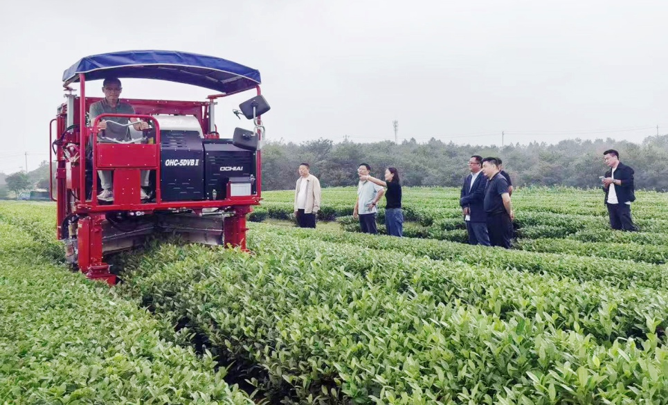 ——“机”中生“智”,提升生产标准。日前,茶业集团在十字铺茶场举办“乘坐式”采茶机智能化采茶现场作业观摩。该机械每小时作业面积可高达5亩,是传统人工机采效率的10倍以上。采茶时能够根据茶树高度和冠形弧度,进行自动调节,有效控制鲜叶齐整度,达到中高端大宗茶的原料标准。该机械的投入使用,实现了茶园生产作业的机械化、精细化、标准化。茶业集团还结合茶叶生产实际,积极推行“机采+人工补采”组合模式,降低茶损率,保障茶叶品质。