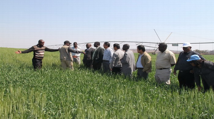 8311,津巴布韦西马绍纳兰省省长怀卜·齐达瑞凯瑞和国防部毛伊将军,分别带领政府官员和有关单位负责人应邀到访安徽农垦皖津公司,公司董事长韩大鸣、副总经理拓扎伊上校给予了热情接待,并就公司入驻以来的办公生活、团队建设、人员安置、生资采购、灌溉恢复、大田种植、成本控制、安全保卫、供电保障、收获准备,以及目前投资到位、机械设备、小麦长势、下一季种植计划、生产资料进口、公司发展方向、当前存在困难等方面情况进行了系统地介绍