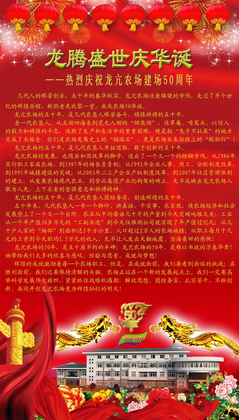 热烈祝贺龙亢农场建场五十周年