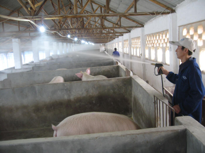 今年元月,中央财政补贴项目——生猪标准化养殖小区项目落户农场,陈庆文成为安庆西郊项目受益第一人。财政补助19万元、个人配套5万元,项目共投资24万元,对850平方米的猪舍进行全面改造,一切按标准化、工厂化模式设计建设,原来的粗放式猪舍改为全封闭式结构,原来的单道运饲料、喂料、排污改为现在的双道分开运行,入口处由原来的消毒剂消毒改为现在的紫外线消毒,猪舍设有电风扇、纱窗等抗热、防蚊的设施,猪圈内实行喷枪喷雾消毒。同时建有兽医室、消毒室、饲料车间、厌氧式发酵池、氧化塘等一整套标准化设施。陈庆文说:“住在标准间的猪很快乐!”
