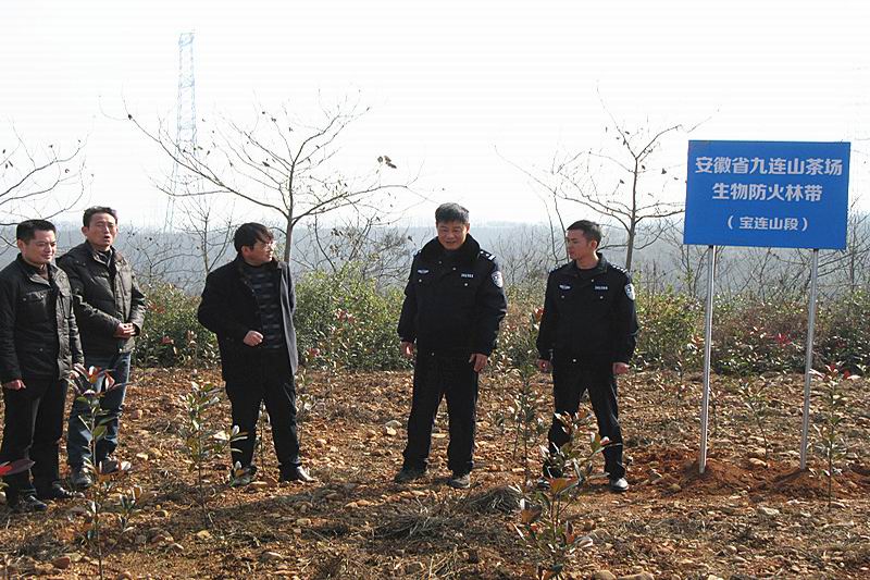 12月2日,芜湖市森林公安局局长王夏云、芜湖县林业派出所所长宁健一行,检查验收了九连山茶场新建10公里生物防火林带,场党委书记王仕超等陪同。