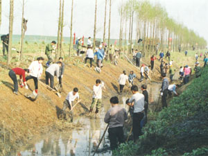 连日来,为加强小麦田间管理、做好清沟沥水工作,东 风湖农场集中人力,对有关主排灌大沟进行清淤。图为 机关、场直单位及三分场职工清淤现场。
