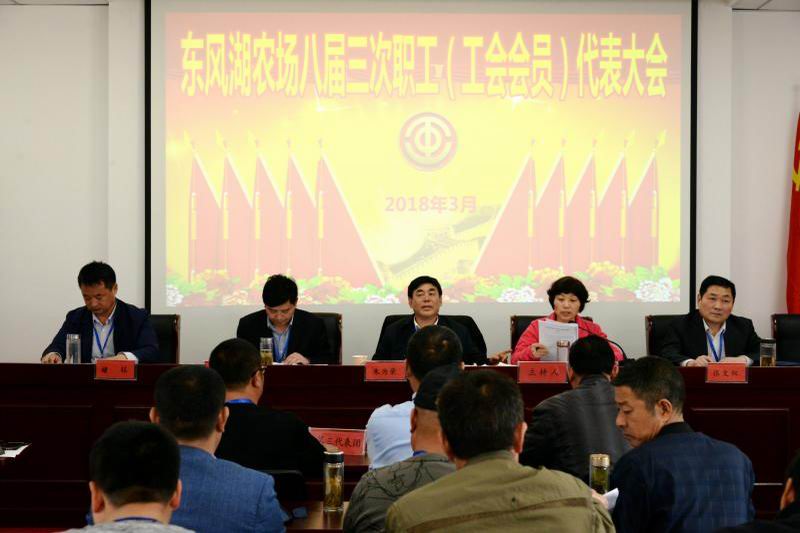 327,东风湖农场八届三次职代会胜利召开。场长工作报告指出,2017年,我们突出主业增质效,严实并举提效能,持续保障和改善民生,职工宜居水平明显提升;2018年要以实施振兴战略为契机,围绕效益优先抓改革促增效,围绕美好生活改善民生福祉,充分发挥广大职工在新时代转型发展攻坚战中主力军作用,为决胜全面建成小康社会而努力奋斗,大踏步奔向农场更加幸福美好的未来!